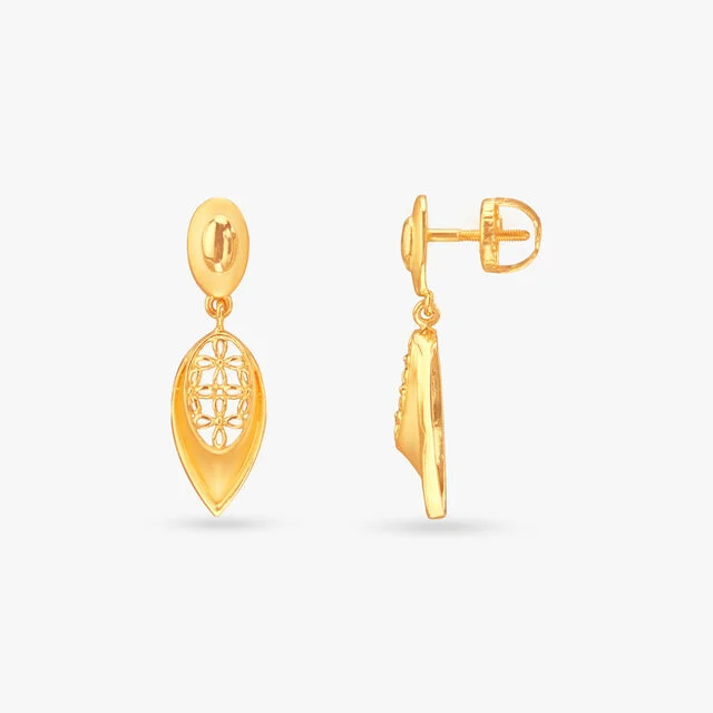 Inspired by the gentle beauty of blooming petals, the Golden Petal Gold Drop Earrings from Kandana Jewellers bring nature’s grace into a timeless gold design. These earrings celebrate softness, movement, and understated luxury, making them a beautiful addition to any jewelry collection.